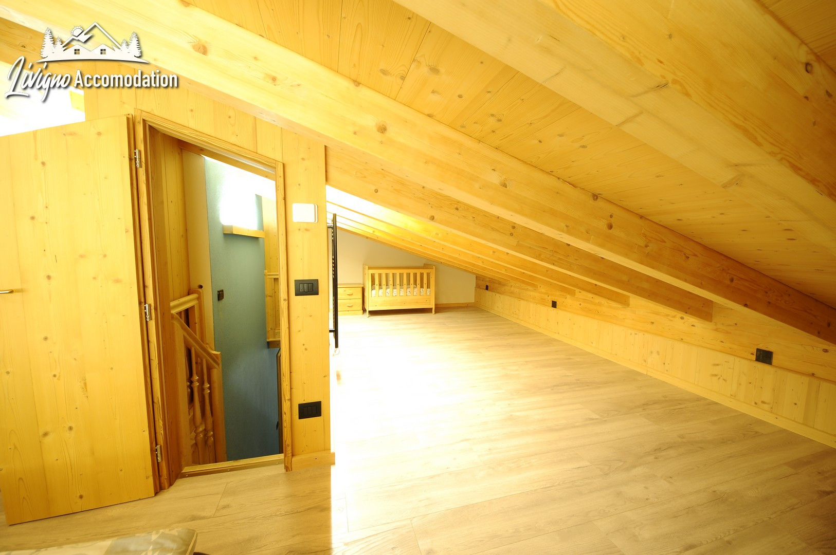 L’ambiente interno è composto da una camera matrimoniale, una camera con letto singolo, una camera mansardata con letto matrimoniale ed un'ultima camera mansardata con tre letti singoli il passaggio che conduce all'ultima stanza in mansarda ha un altezza molto ridotta. Si raccomanda di prestare estrema attenzione (soprattutto alla testa).In cucina, trovate un divano a 2 posti, una smart tv, una cucina attrezzata con un pratico piano cottura in vetroceramica, un forno, la lavastoviglie e molti utensili, infine vi è il bagno con vasca, doccia e lavatrice (a pagamento).