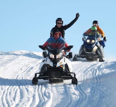 Erleben Sie ein adrenalingeladenes Panorama-Abenteuer bei einer Schneemobil-Tour in Trepalle. Dieser Ausflug führt Sie zum Eira-Pass und zum malerischen Crap…