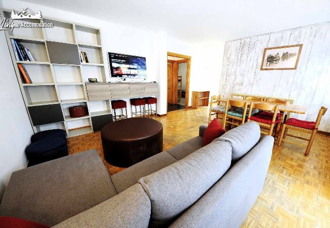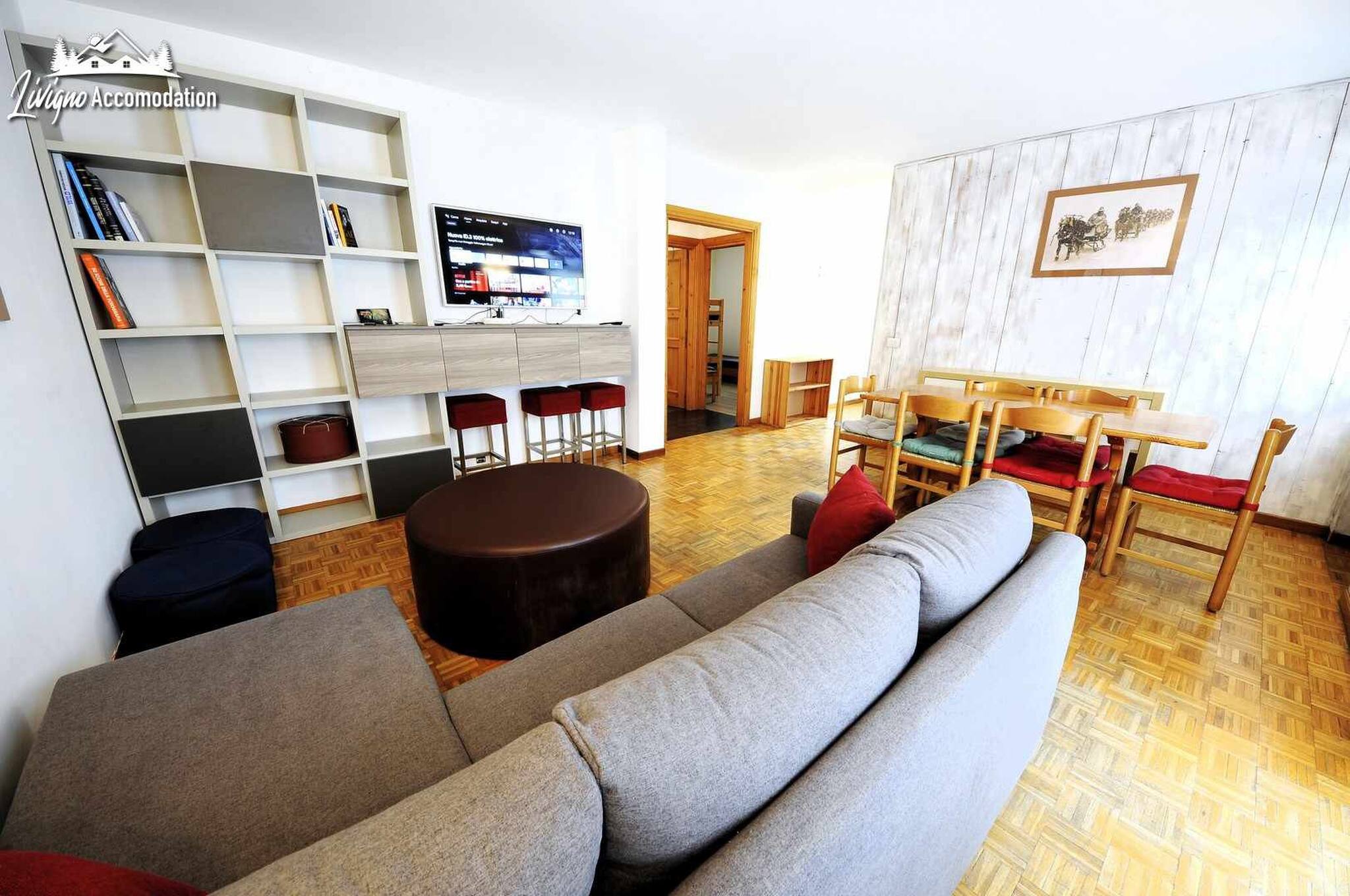 Das Chalet Riccio, ein neubau, der die livignesische tradition respektiert, empfängt sie an einer strategischen position, nur wenige schritte von der Latteria, dem Aquagranda und der fußgängerzone entfernt. Die Wohnung Aaron im erdgeschoss bietet ihnen geräumige und lichtdurchflutete räume, dank der großen glasfronten, die auf die berge blicken. Mit modernem stil eingerichtet, ist es der ideale ort für alle, die komfort und entspannung suchen.