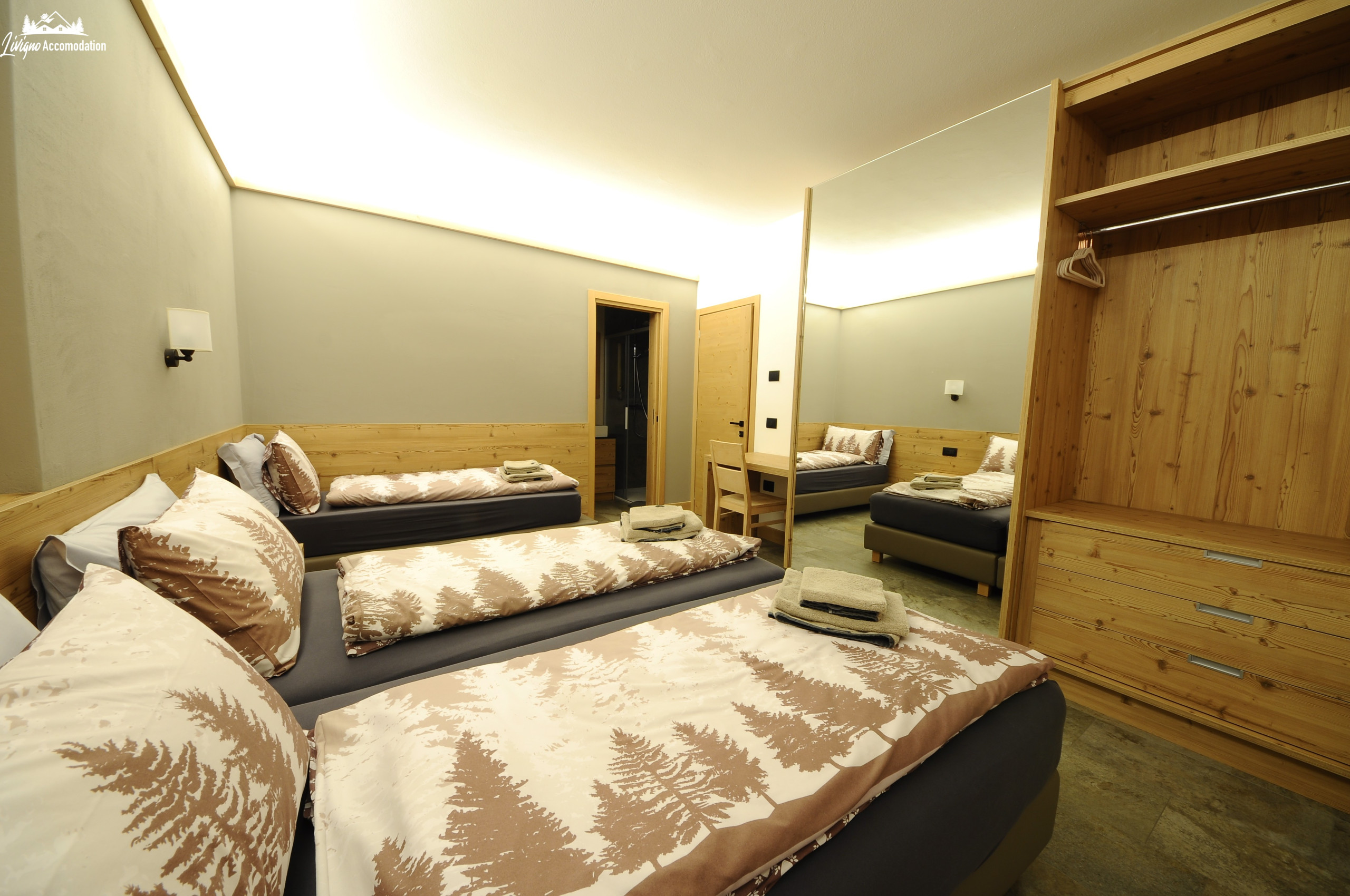 The Abete Rosso Trilo Rododendro apartment is located in a newly built house, equipped with all comforts and finely decorated in a modern style. The house is located in the center of Livigno, with a view of the mountains, adjacent to Lupigno and in a very sunny area. The ski lift (Campo scuola nr. 23) is just a few dozen meters away. The free bus stop is a hundred meters away and allows you to easily move around Livigno, including Trepalle.