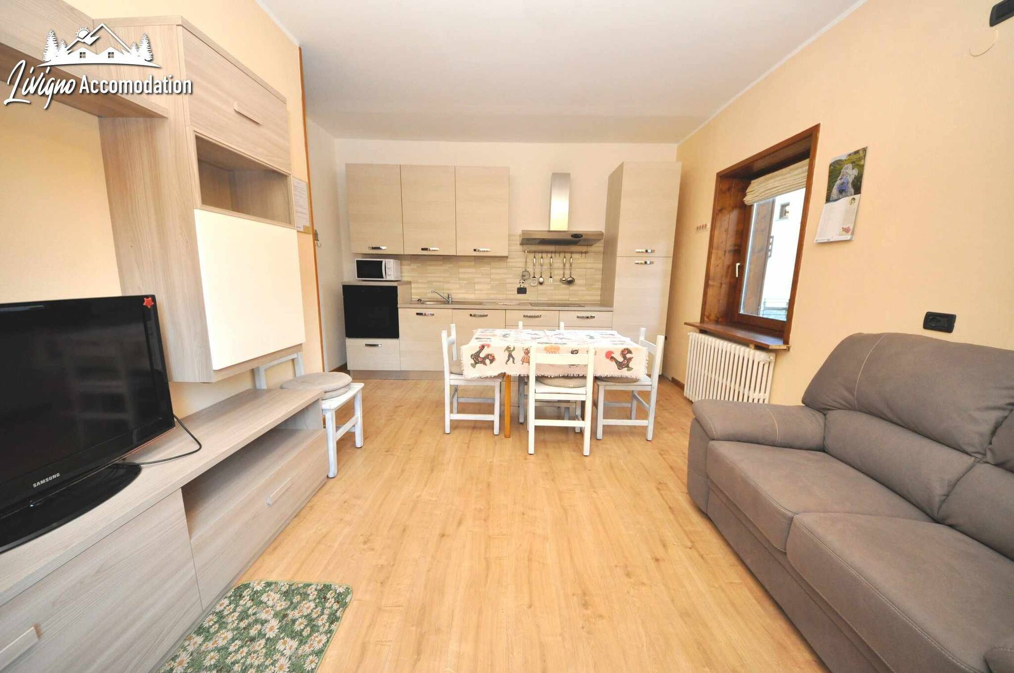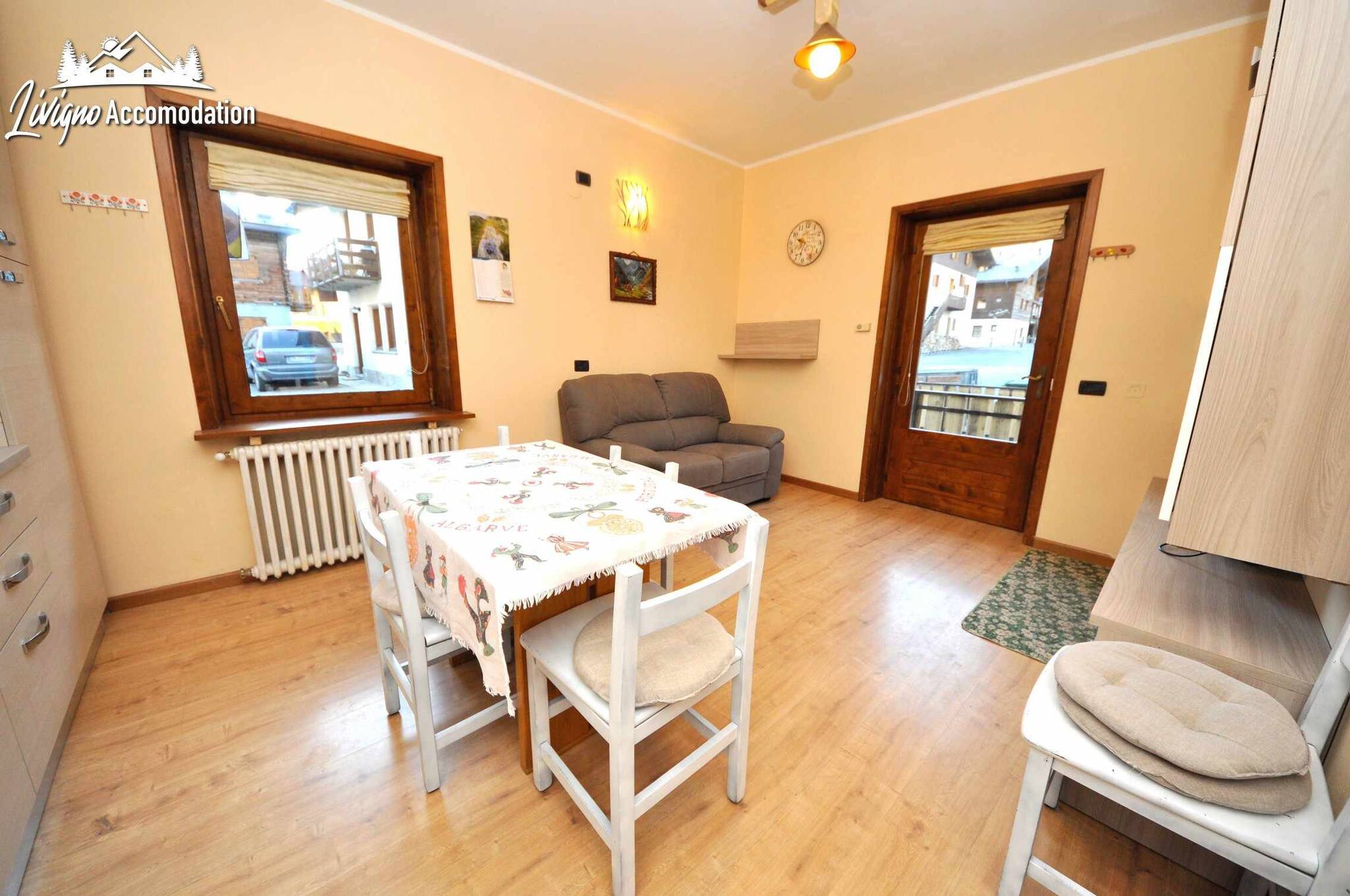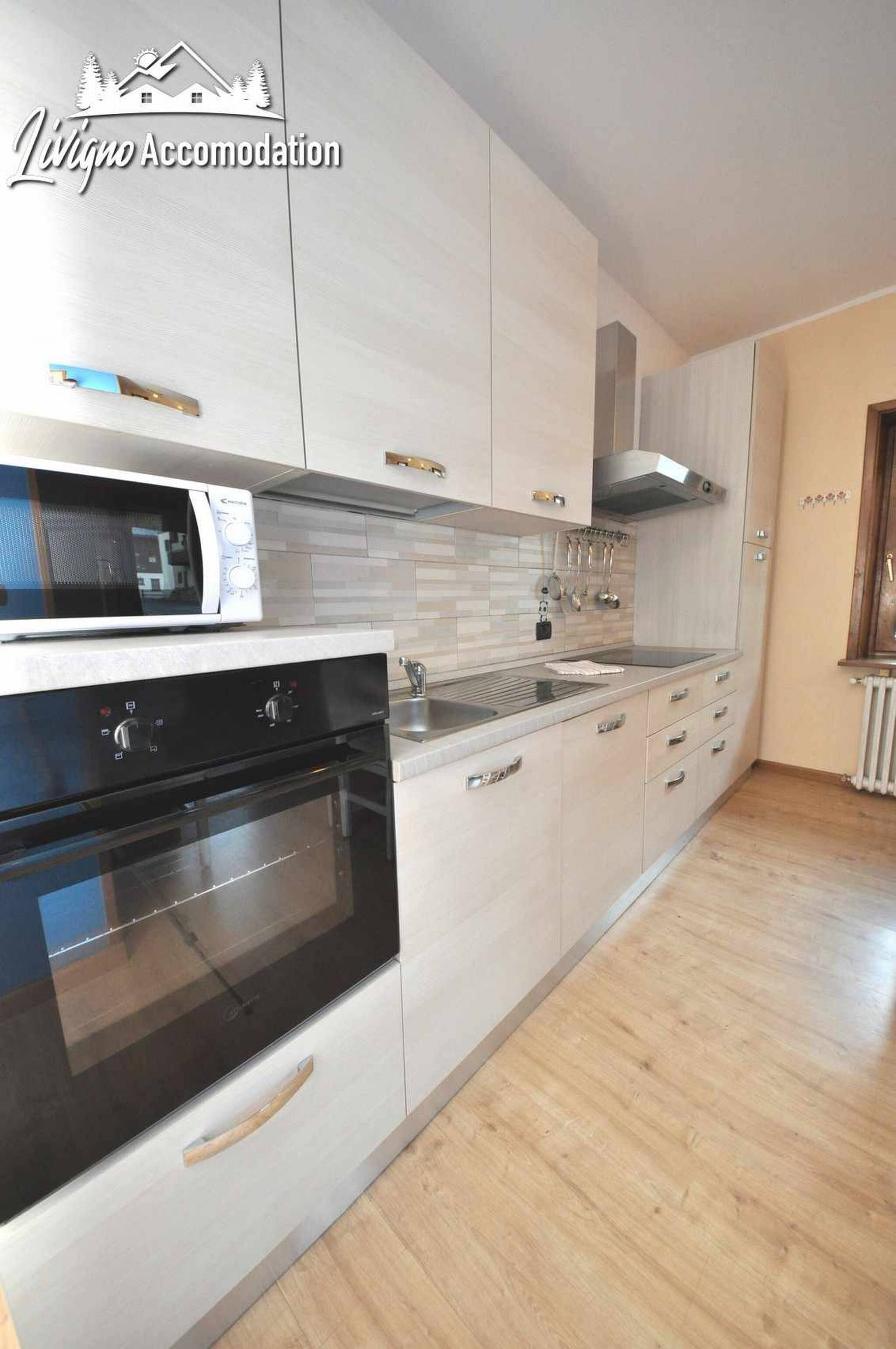 Chalet Riccio, a new construction that respects the Livigno tradition, welcomes you in a strategic location, a few steps from the Dairy, Aquagranda and the pedestrian area. The Aaron apartment, on the ground floor, offers spacious and bright spaces, thanks to the large windows overlooking the mountains. Furnished with a modern style, it is the ideal place for those seeking comfort and relaxation.