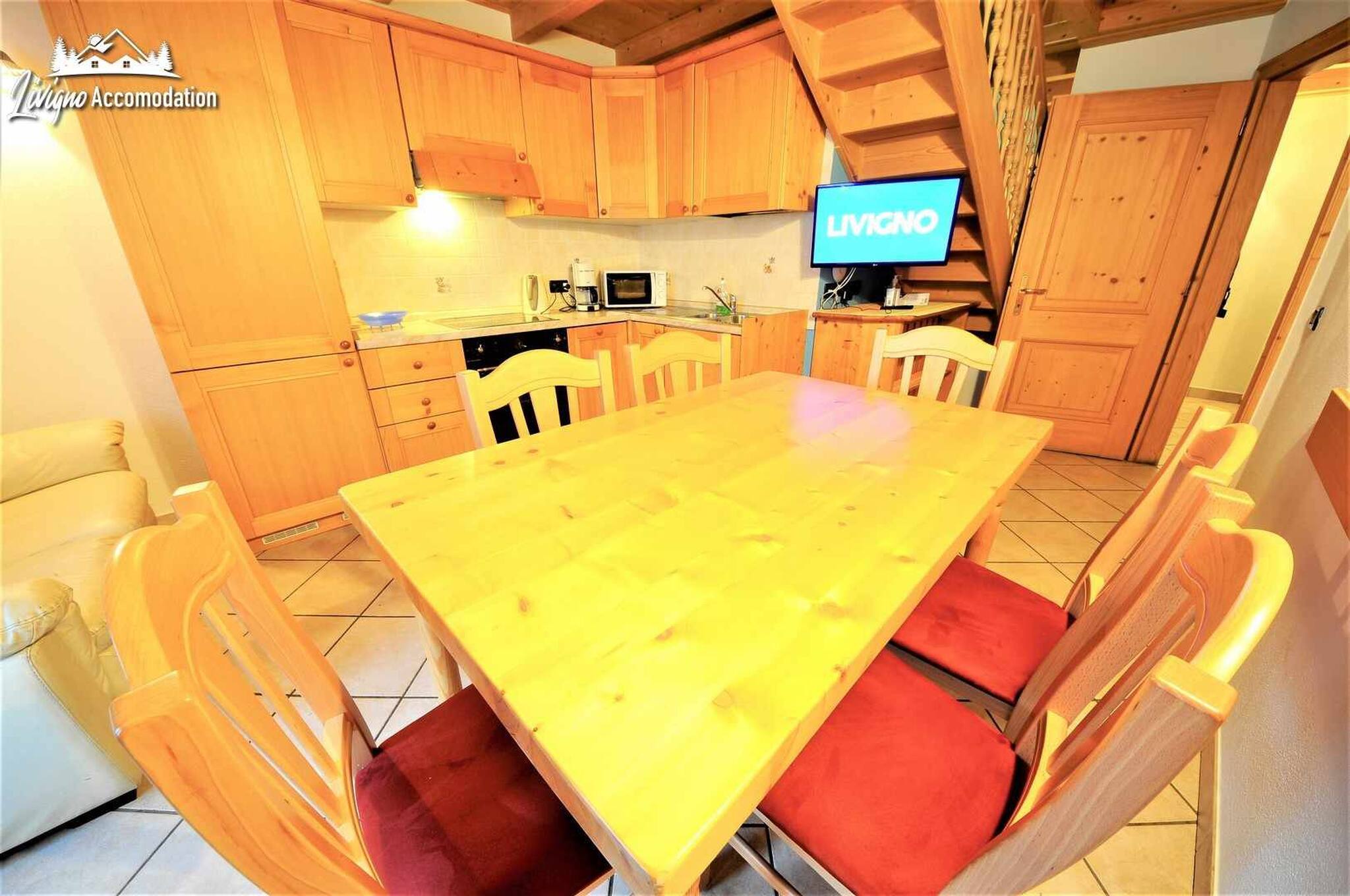 The Mont dala Nef apartment is located inside a traditional Livignasca dwelling, the Bait li Desja situated in an excellent position, near the Livigno Centre and the cycle path. Below the house you will find a fruit and vegetable shop and in the vicinity many other clothing and other shops. A few metres from the house, there is the free bus stop which, in addition to being frequent, allows you to move easily throughout Livigno, including Trepalle.