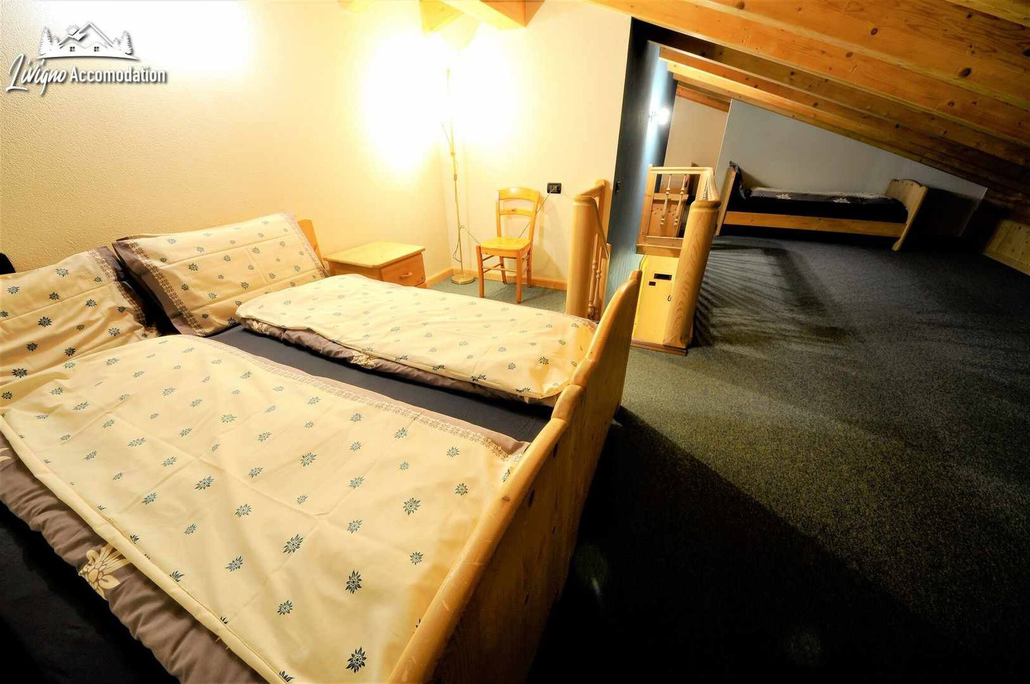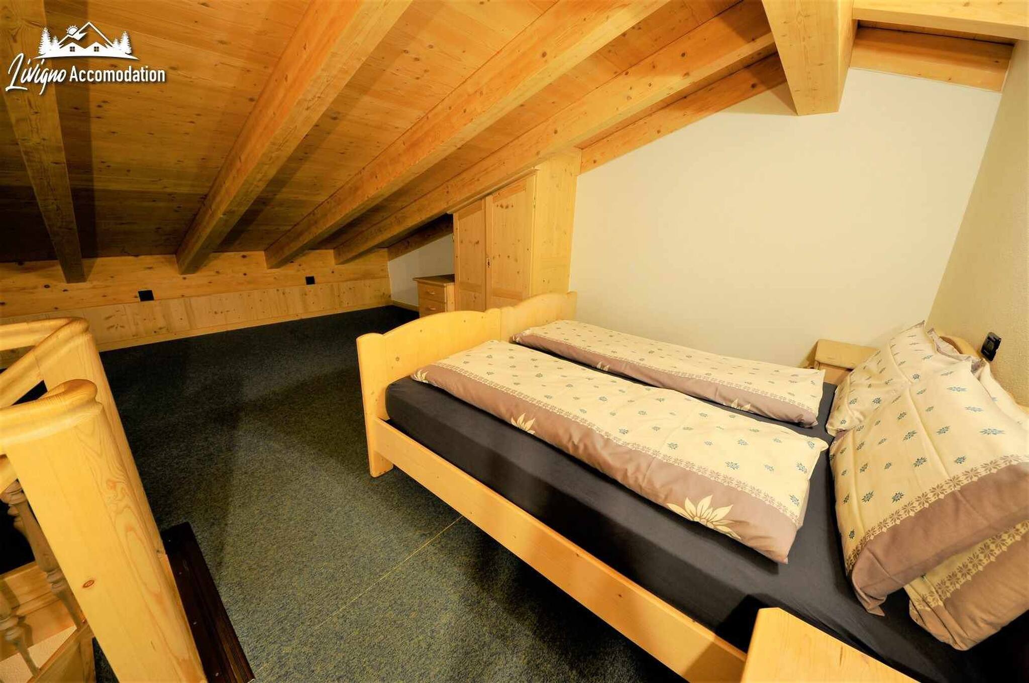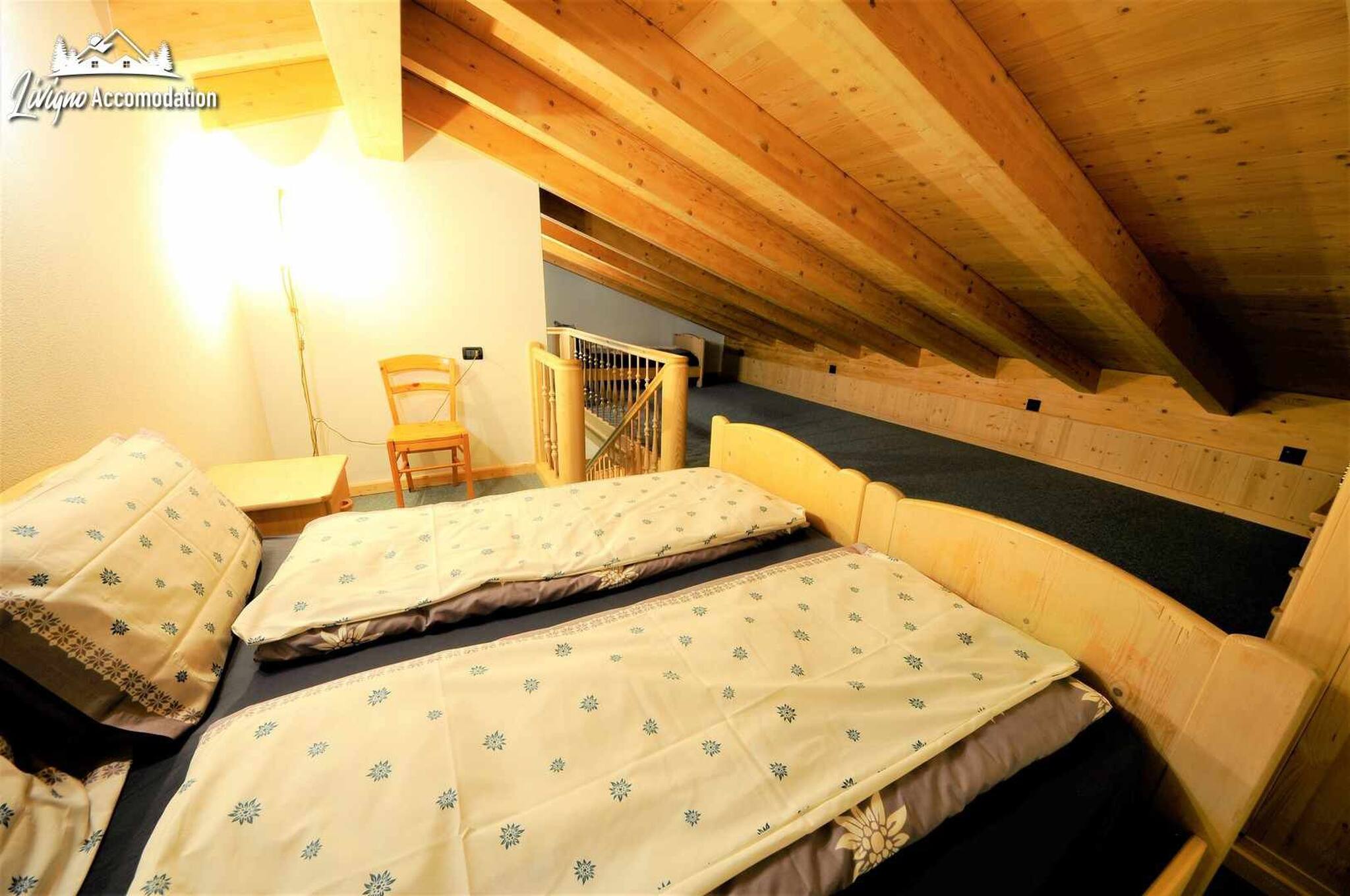 A spacious four-room apartment that extends over two levels, offering you a breathtaking view of the majestic Livigno mountains. The classic, warm and welcoming furnishings will make you feel at home, while the numerous comforts at your disposal will allow you to relax and fully enjoy your holiday.